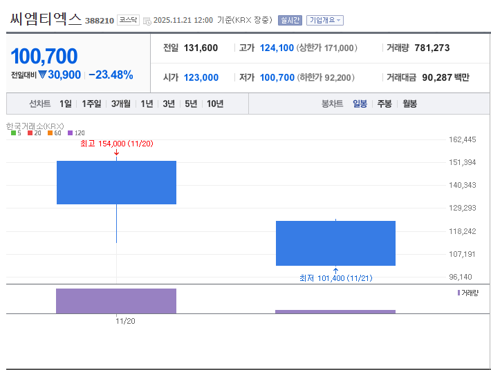📈 씨엠티엑스 주가 현황 (실시간 업데이트)