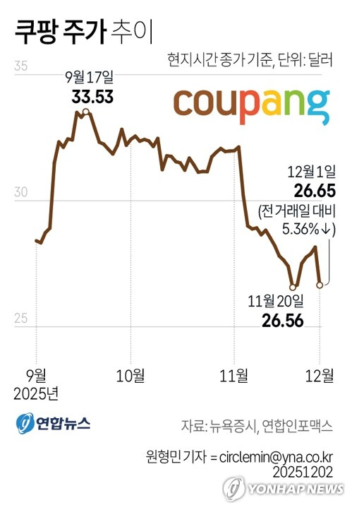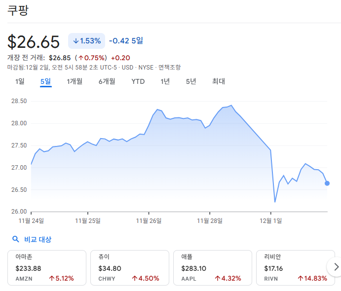 12월 1일 쿠팡 주가 움직임 📊