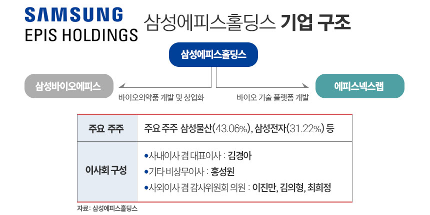 삼성에피스홀딩스(전략) → 에피스넥스랩(플랫폼) → 삼성바이오에피스(개발·임상·허가)