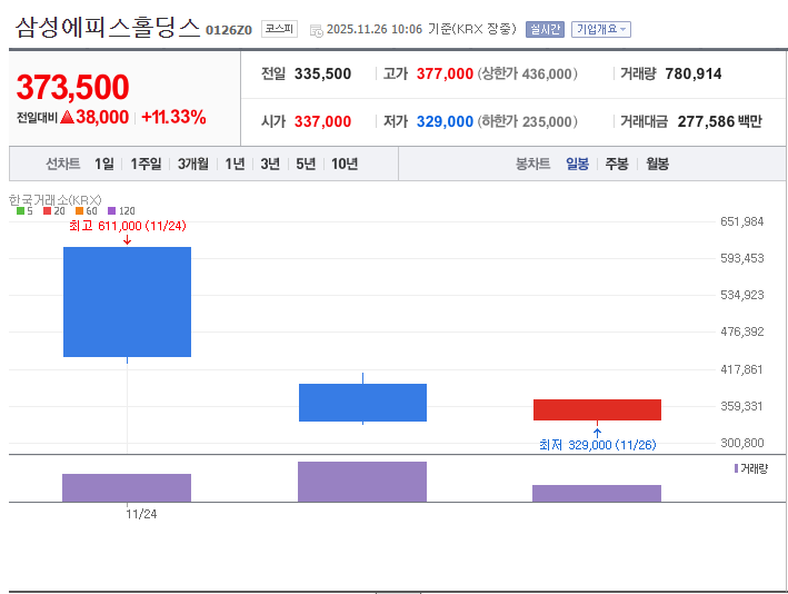📊 삼성에피스홀딩스 주가 급락 타임라인