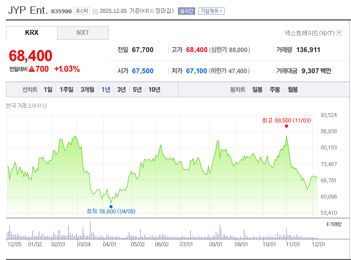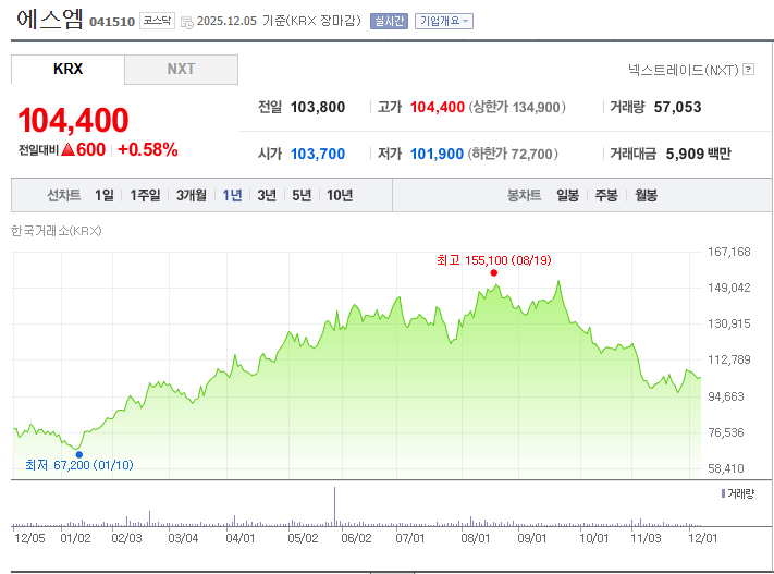 💹 SM엔터 주가 현황 (2025년 12월 기준)
